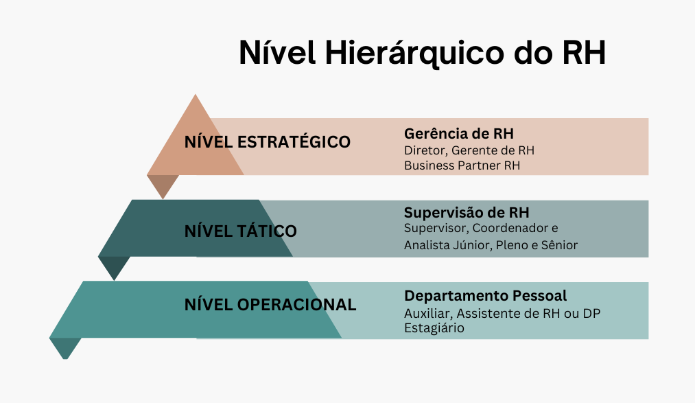 O departamento de Recursos Humanos pode apresentar esses três níveis hierárquicos, mas sua configuração pode variar conforme o porte e a estrutura da organização. À medida que se ascende na hierarquia, a exigência por uma sólida experiência nesse setor se intensifica, permitindo que o profissional conquiste posições através de oportunidades, habilidades e vivências profissionais.